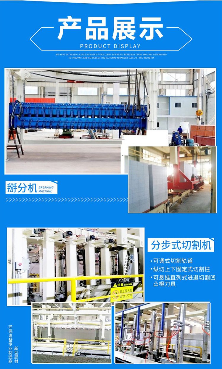 加氣塊生產(chǎn)線以硅質(zhì)材料(砂、粉煤灰及含硅尾礦等)和鈣質(zhì)材料(石灰、水泥)為主要原料,摻加發(fā)氣劑(鋁粉),通過配料、攪拌、澆注、預(yù)養(yǎng)、切割、蒸壓、養(yǎng)護(hù)等工藝過程制成的輕質(zhì)多孔硅酸鹽制品的新型建筑材料生產(chǎn)線。