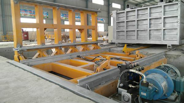 負(fù)責(zé)墻板機(jī)在場(chǎng)地內(nèi)工位切換,設(shè)備體積小,使用油缸推動(dòng),安全可靠。