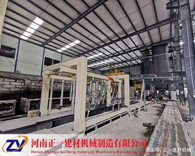 3、澆注工藝:采用固定澆注,模具移動(dòng)到澆注攪拌機(jī)下方,接受澆注后,自動(dòng)進(jìn)入能夠控制濕度和溫度的養(yǎng)護(hù)室,加速胚體的硬化。