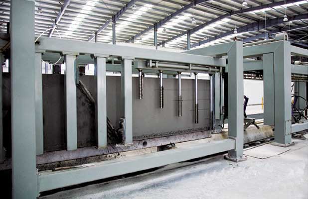 蒸壓加氣混凝土坯體質(zhì)量大而強度小,脆弱易裂,所以必須安裝使用有實力的設備廠家提供的調(diào)運翻轉(zhuǎn)、切割、托板、模具、運輸?shù)仍O備及設施,確保臺面及相關部件最大限度的平整,精確,平穩(wěn)的翻轉(zhuǎn),平穩(wěn)升降、運輸,均不得對坯體產(chǎn)生沖擊、振動。這些設備要盡可能簡單緊湊便于修理、操作、安全、可靠、耐用。