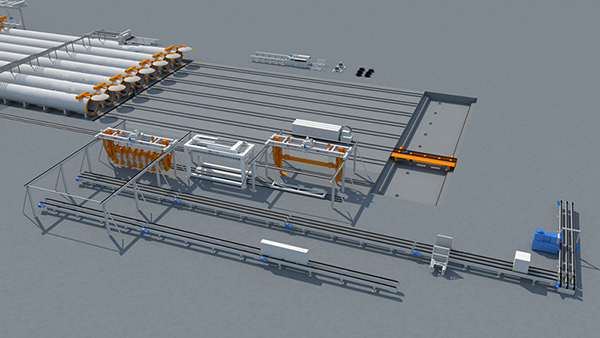 翻轉(zhuǎn)吊具是加氣混凝土生產(chǎn)中的重要設(shè)備,屬于加氣混凝土設(shè)備的重要組成部分。 翻轉(zhuǎn)吊具將坯體(帶模具)在空中翻轉(zhuǎn)90度,吊運(yùn)后放置于切割小車上,脫模后即可通過切割機(jī)操控臺對坯體進(jìn)行切割。另外,將脫模下來的??蚺c返回的側(cè)板進(jìn)行組模,吊運(yùn)至澆注回車線上進(jìn)行循環(huán)澆注。