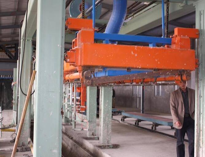 在加氣塊設(shè)備和切割和澆注之后,通過輸送鏈將模具推入初始腔室以進行初始氣體冷凝,室溫為50-70℃,并且初始加熱時間為1.5-2小時( 根據(jù)地理優(yōu)勢,這可以避免)工藝),在初始提升之后,使用負壓擴張器將模具框架和坯料一起懸掛在切割臺上,在該切割臺上預(yù)先放置水壺的底板。 取下模架。 曝氣塊設(shè)備切割機橫切坯料,縱向切割,磨削面包頭,將模架掛回模具車進行手動清洗和脫脂,然后將其掛在模具上的模具上進行 下一次澆注,加上空氣擋板設(shè)備切斷后,空心體和水壺底板上的兩個起重機懸掛在車上。 在層之間支撐兩層,并且?guī)讐K卡片組合在一起。