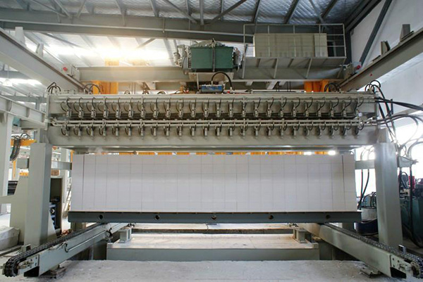5.本機(jī)型除生產(chǎn)砌塊外還生產(chǎn)板材,而且對(duì)坯體作六面切割,所以制品質(zhì)量不受涂模油及模具變形影響;