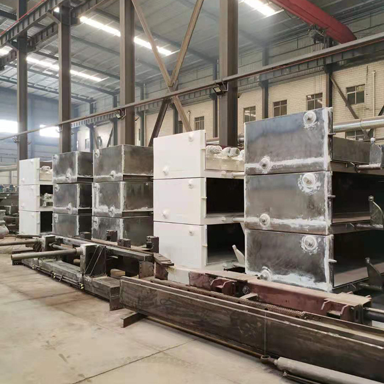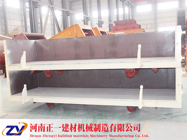 模具與側(cè)板結(jié)合可盛裝漿料,靜置養(yǎng)護(hù)發(fā)泡固話成坯體,側(cè)板同時(shí)又承載坯體至切割機(jī)進(jìn)行切割,并與蒸養(yǎng)小車組碼后進(jìn)入蒸壓釜進(jìn)行蒸養(yǎng)。