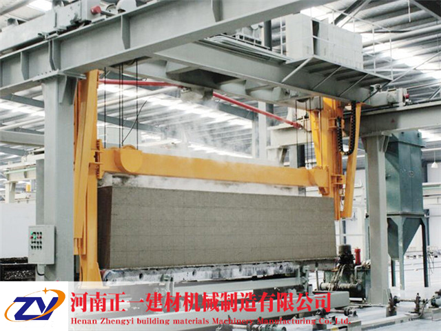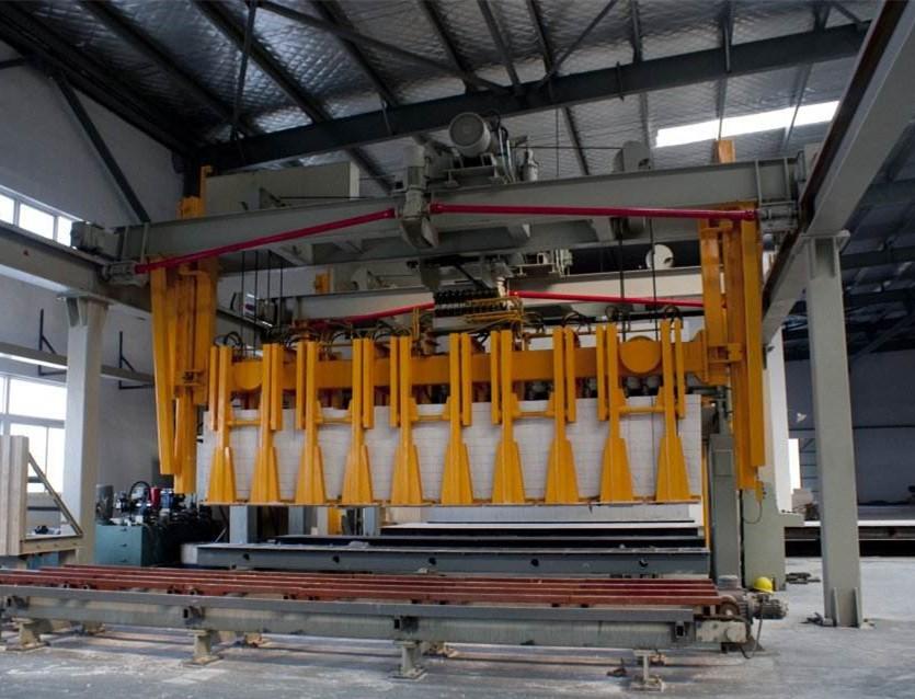 搬運(yùn)吊具分為半成品吊具和成品吊具;搬運(yùn)吊具是加氣混凝土磚設(shè)備中一道銜接工序中的設(shè)備,半成品吊具作用就是切割工段切割完成后,通過半成品吊具把坯體吊至加氣磚設(shè)備蒸養(yǎng)小車進(jìn)行入釜編組,成品搬運(yùn)吊具是將蒸壓過的加氣混凝土砌塊,從蒸養(yǎng)車上搬運(yùn)調(diào)轉(zhuǎn)出來,放置成品輸送線上,運(yùn)送到成品打包區(qū)。