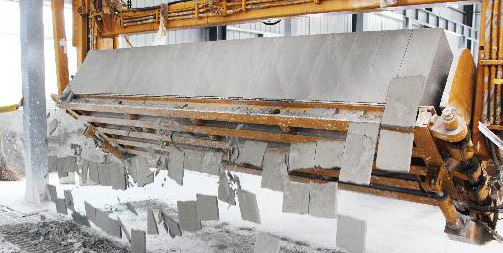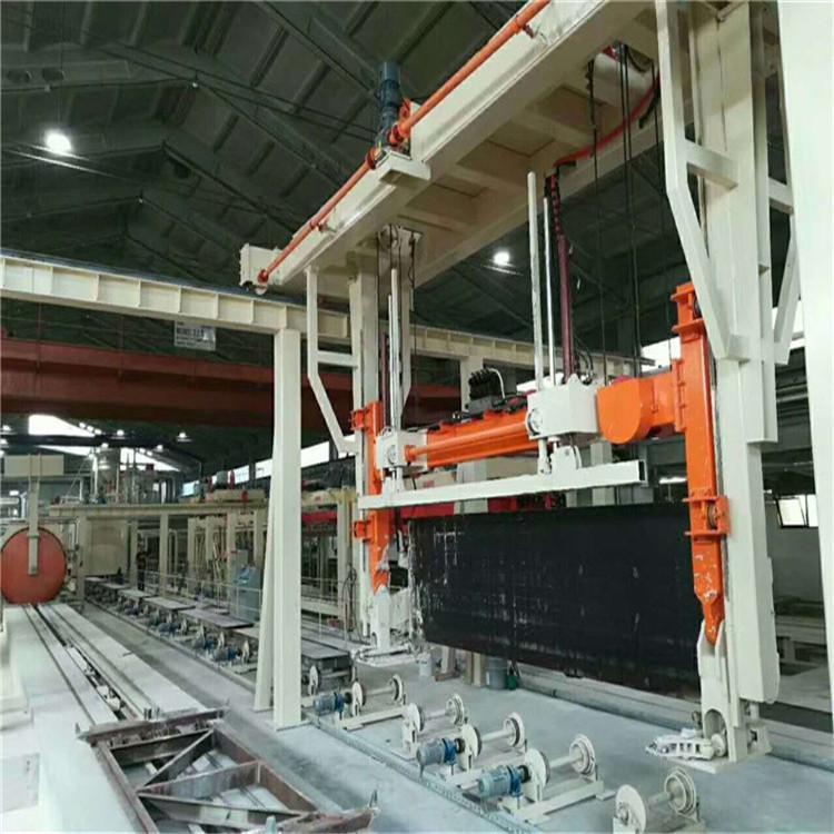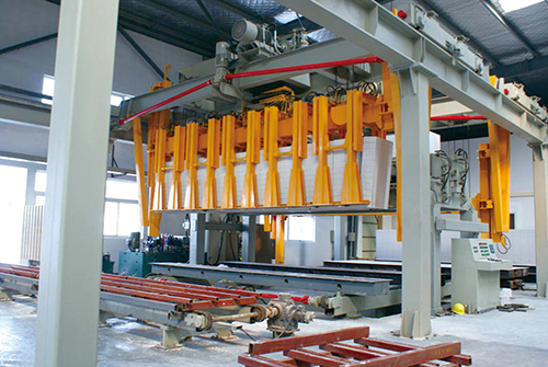 翻轉(zhuǎn)行車、切割機(jī)是加氣混凝土生產(chǎn)線中的主要設(shè)備,翻轉(zhuǎn)切割工藝是對加氣混凝土設(shè)備坯體進(jìn)行分割和外形加工,使之達(dá)到外觀尺寸要求,加氣混凝土翻轉(zhuǎn)切割工藝體現(xiàn)加氣混凝土便于進(jìn)行大體積成型、外形尺寸靈活多樣而能大規(guī)模機(jī)械化生產(chǎn)的特點。