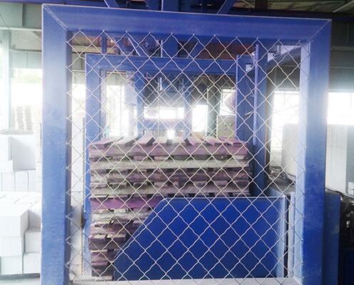 切割完成后,通過翻轉(zhuǎn)去底行車把坯體底面廢料去掉再吊至蒸養(yǎng)小車進(jìn)行入釜編組。
