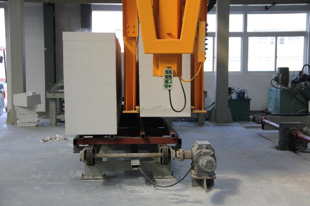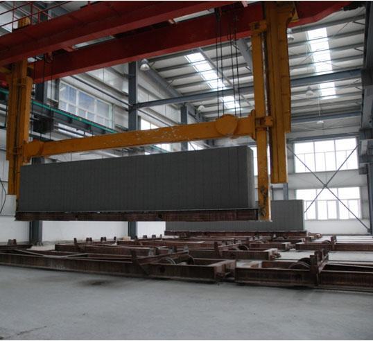 搬運(yùn)吊具分為半成品吊具和成品吊具;搬運(yùn)吊具是加氣混凝土磚設(shè)備中一道銜接工序中的設(shè)備,半成品吊具作用就是切割工段切割完成后,通過(guò)半成品吊具把坯體吊至加氣磚設(shè)備蒸養(yǎng)小車(chē)進(jìn)行入釜編組,成品搬運(yùn)吊具是將蒸壓過(guò)的加氣混凝土砌塊,從蒸養(yǎng)車(chē)上搬運(yùn)調(diào)轉(zhuǎn)出來(lái),放置成品輸送線上,運(yùn)送到成品打包區(qū)。