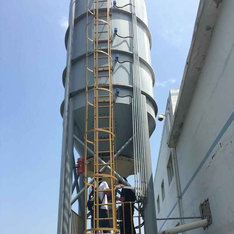在料倉靠近爬梯一側(cè)分上中下裝有三個(gè)料位計(jì),當(dāng)料倉里的石灰粉到達(dá)料位計(jì)位置時(shí),料位計(jì)會(huì)停止運(yùn)轉(zhuǎn),電控柜上的指示燈亮起,說明倉里的石灰粉到了料位計(jì)的位置,當(dāng)石灰粉達(dá)到上部第三個(gè)料位計(jì)時(shí),電控柜上的指示燈亮起,同時(shí)電控柜會(huì)發(fā)出蜂鳴報(bào)警,這時(shí)要停止進(jìn)料,關(guān)閉震動(dòng)器開關(guān),停止進(jìn)料。