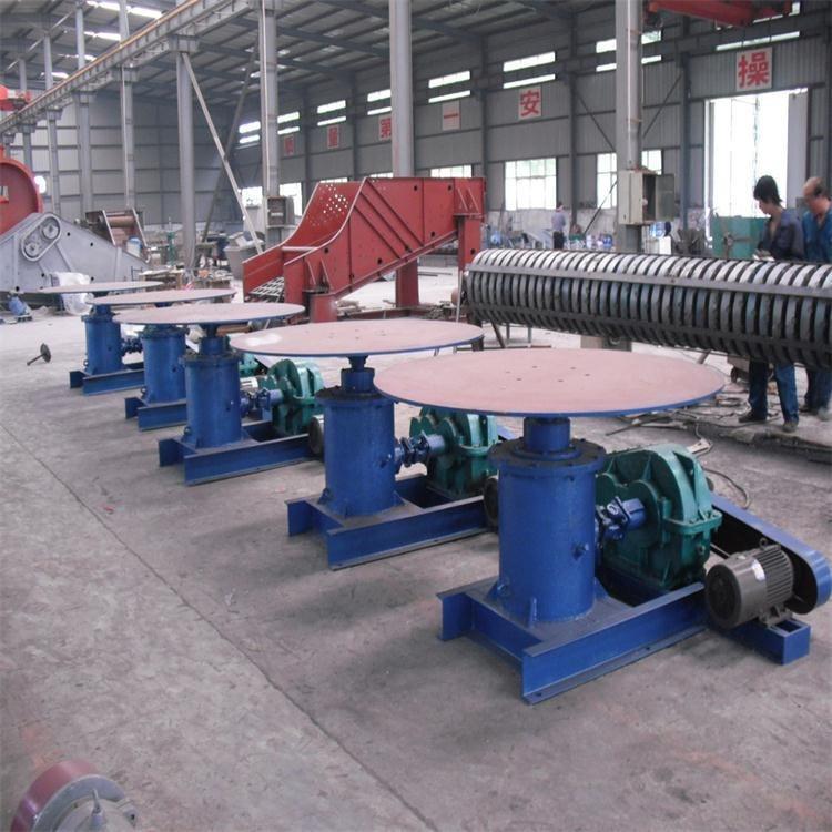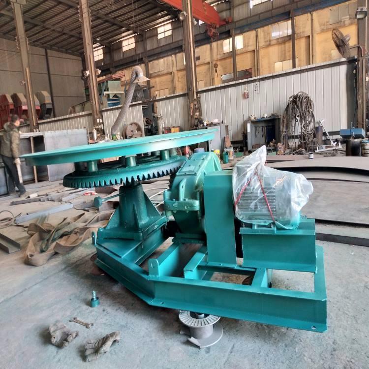 電動機經(jīng)聯(lián)軸器通過減速機帶動圓盤。圓盤轉(zhuǎn)動時,料倉內(nèi)的物料隨著圓盤一起移動,并向出料口的一方移動,經(jīng)閘門或刮刀排出物料。排出量的大小可用刮刀裝置或閘門來調(diào)節(jié)。圓盤給料機套筒一般有蝸牛式或直筒式兩種,蝸牛式套筒采用閘門排料,具有下料均勻、準(zhǔn)確,對溶劑、反礦粉等配料適合。直筒式套筒采用刮刀排料,堵料現(xiàn)象較蝸牛式套筒輕,但下料量波動大。當(dāng)精礦粉活粉礦用量較大時,宜用帶活動刮刀套筒。反之,熔劑或燃料用料量小時,宜采用閘門式套筒。