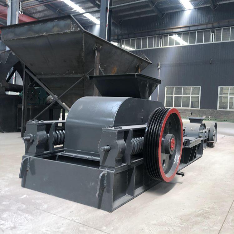 對(duì)輥破碎機(jī)的破碎機(jī)是一對(duì)互相平行水平安裝在機(jī)架上的圓柱形輥?zhàn)?。前輥和后輥工作相向旋轉(zhuǎn),物料加入到喂料箱內(nèi),落在轉(zhuǎn)輥的上面,物料在輥?zhàn)颖砻婺Σ亮Φ淖饔孟拢怀哆M(jìn)轉(zhuǎn)輥之間,受到輥?zhàn)拥臄D壓而粉碎。粉碎后的物料被轉(zhuǎn)輥推出,向下卸落。由此可見對(duì)輥式破碎機(jī)都有兩個(gè)輥,所以平常生活中大家都稱它為雙輥破碎機(jī)。