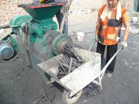 煤棒機(jī)又叫煤棒擠出機(jī),該機(jī)主要包括機(jī)座、軸承座、螺旋軸、筒體、出料口、煤棒模組成。煤棒機(jī)是利用螺旋擠壓的原理,將調(diào)制好的粉煤壓縮成具有一定強(qiáng)度的預(yù)定形狀的煤棒,廣泛用于煤粉、煤沫、煤矸石、焦煤、褐煤、無(wú)煙煤、鐵粉、鋁粉等原料的成型。利用煤棒機(jī)制作煤棒可以充分利用煤粉,在制作過(guò)程中不需要摻加石灰,降低了燃料的成本,并提高了煤的發(fā)熱量,具有較高的經(jīng)濟(jì)效益,另外設(shè)備體積小,不需要炭化烘干設(shè)備,不需要蒸汽,節(jié)省投資,減少了占地面積。同時(shí)為生產(chǎn)廠家有效利用廉價(jià)煤粉,代替高價(jià)煤塊,從而降低生產(chǎn)成本,提高經(jīng)濟(jì)效益,提供了可靠的保障。