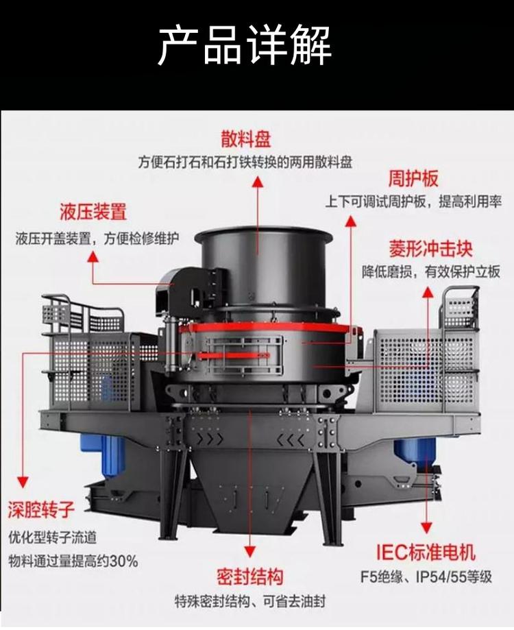 3、制砂機可靠性高,安全 裝置嚴密,保證設(shè)備及人身安全。